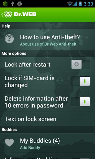 Bilgisayarımızda kullandığımız ve android içinde sunulan gelmiş geçmiş en iyi Anti-Virus(hem pc hem telefon) programı olan Dr.Web'i size sunuyorum. Gelişmiş filtreleme seçenekleri ve uyarı sistemi ile telefonunuzda kontrolü ele almanıza olanak sağlıyor. Store'dan indirdiğimiz şeyleri, yüklediğimiz APK dosyalarını, bilgisayarımızdan telefona attığımız her şeyi tarıyor ve virus olup olmadığını bize söylüyor. Play' Store'nin en pahallı uygulamasıdır : 75.00 $